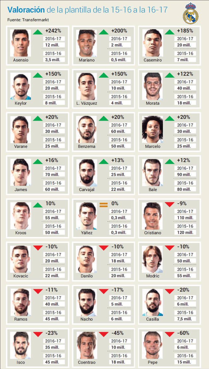 Real France On Twitter Transfermarkt La Valeur Des Joueurs Du Real Madrid Realmadrid